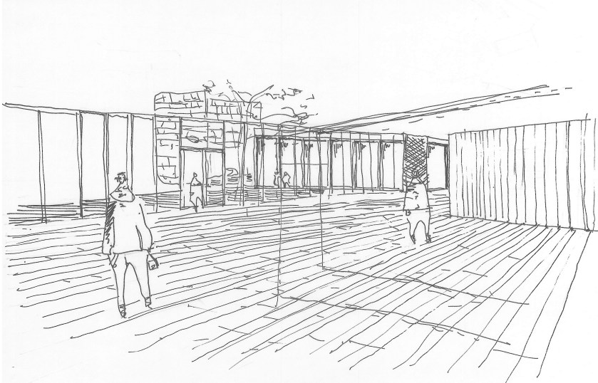 Boceto propuesta de pavimentos para plaza
